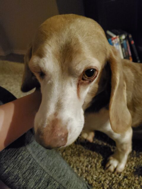 Are you looking for a lovebug? Look no further than JoJo! He may be down one eye, but he has personality plus! JoJo is a goofy, friendly, happy-go-lucky guy who needs nothing more than his beloved spiky ball and a good belly rub. Oh, and food of course! He is a total sweetheart and will make a wonderful companion for someone. He’s laid back and gets along great with people and other dogs. If you’re looking for a dog to hold the couch down and occasionally run after a ball, JoJo’s your guy! He is 8 years old, neutered, vaccinated, microchipped, heartworm negative, and had a recent dental. We don’t know what the story is behind his eye being removed, but he has no trouble seeing with the other one. 🙂 If you’d like to meet JoJo, please apply at www.dfwbeaglebuddies.org/adopt!